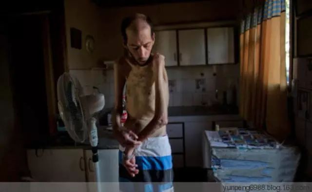 在巴萨维尔瓦索,47岁的前雇农FabianTomasi站在家里展示他瘦弱的身体。