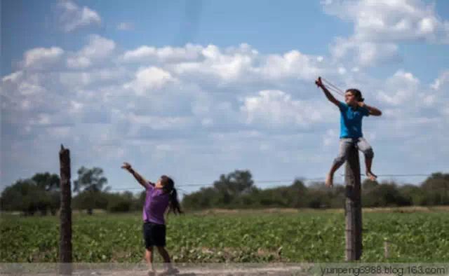 去年5月31日,在阿维亚特莱生物技术大豆种植基地,女孩们在玩弹弓。在这17年里,阿根廷整个国家的大豆作物和几乎所有的玉米棉花已成为转基因,圣路易斯孟山都公司承诺转基因是一种使用较少杀虫剂和化学物是就能获得巨大产量的专利种子。张胡子