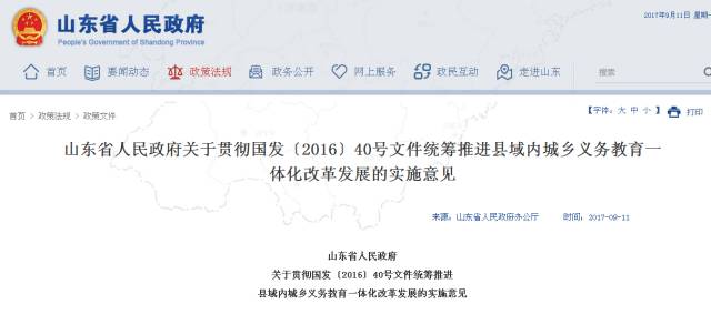 近日,省政府就贯彻国发〔2016〕40号文件统筹推进县域内城乡义务教育一体化改革发展下发实施意见。