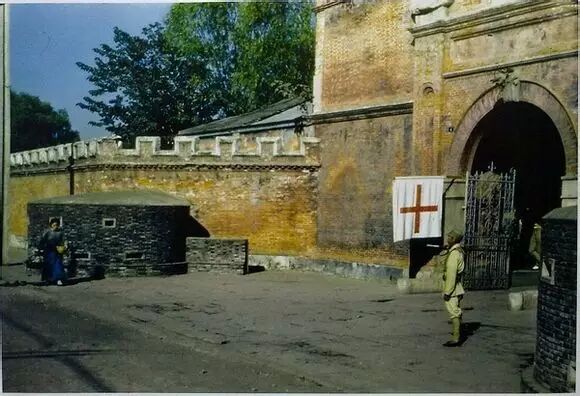 “万恶的旧社会”的 急救站和医院的入口。大门两旁是碉堡