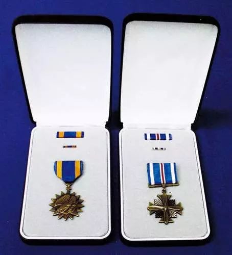 吴其轺生前捐赠给中国人民抗日战争纪念馆的美国“飞行优异十字勋章”和“航空勋章”。