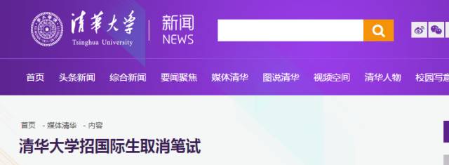 清华招生办消息:国际学生本科招生从今年开始采用申请-审核制度,取消笔试!