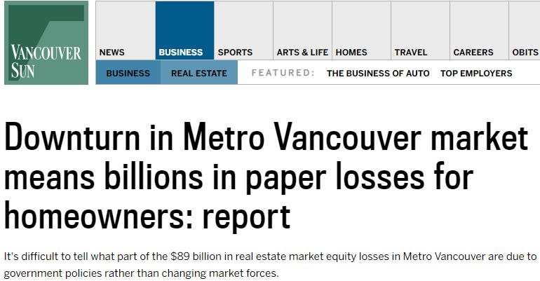 例如在住宅数量最多的温哥华,283915套各类房屋总计贬值436亿元,西温共有各类房屋16930套,账面损失总计76亿元。