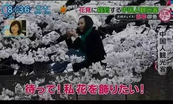 喜爱爬树拍照的华人在日本也出过名。日本媒体披露,中国游客爬树、拉树枝、闯禁区拍照,还有人摘下樱花戴头上。