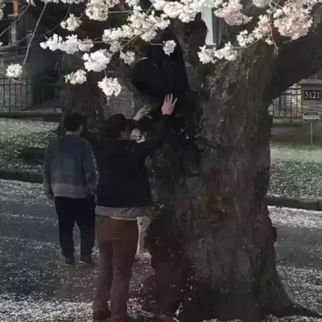温哥华著名的赏樱景点女皇公园,照片中清晰可见有四个人爬上了树,后面貌似还有一人。据当时在场的网友称,好几棵树上都有人。“好大声音的中文啊,装听不见都不行。” $ v: T" }7 ]* x" I7 |