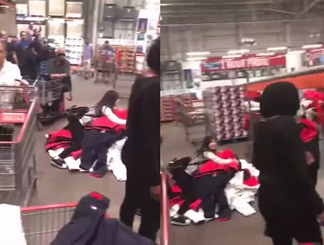 前不久在Costco,一位代购姐姐为了能多拿几件Tommy Hilfiger外套,干脆将卖场货架上的摆放整齐的外套一股脑推倒在地,直接趴在所有衣服上,四仰八叉用身体霸占全部的Tommy外套,不让别人买走。 6 T/ |# Y9 H0 d7 _