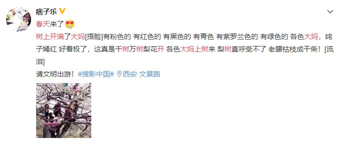 有网友直呼:可怜的樱花树呀,那么多“爱花”之人想和你亲密接触,你的娇嫩身躯能否受得了?