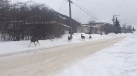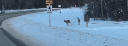 ( `, D9 t! t/ O, t 然而似乎这种优点不仅仅局限于人类——最近,加拿大一群严守规矩的鹿在网上红了,媒体称它们为"最加拿大的鹿"!