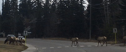 其实在加拿大,不仅是鹿,其他动物也很守规矩。比如和鹿(deer)同科的亲戚麋鹿(elk)。0 K# N1 F) _' R3 ^4 g" z4 x
