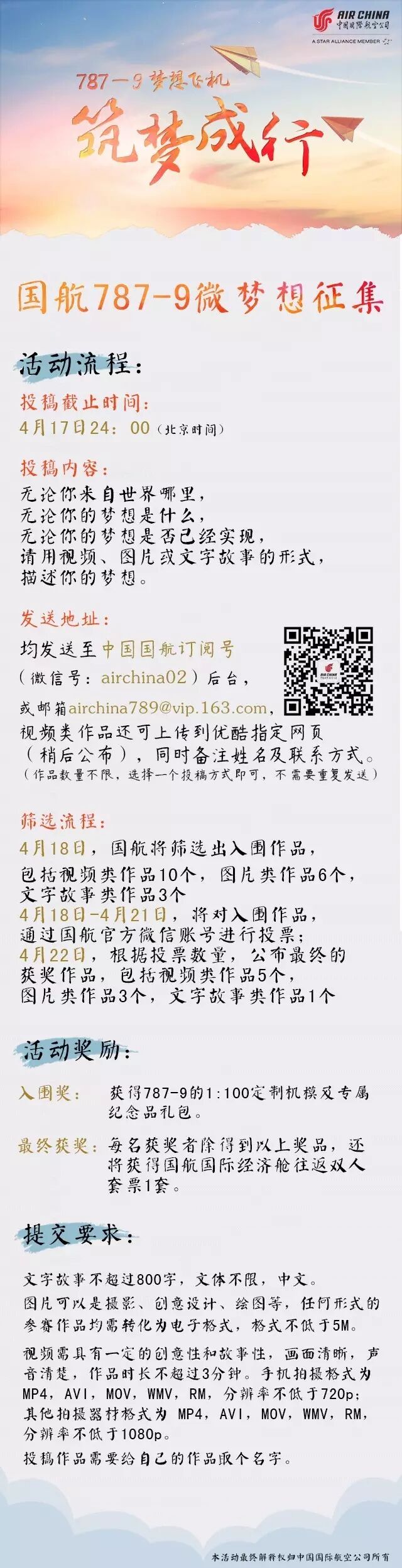 国航举办787-9微梦想征集 快参加!赢取双人国际机票! |