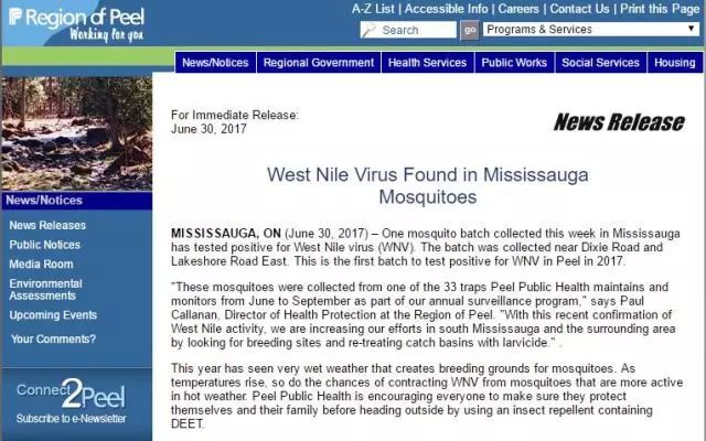 本月初,多伦多市区内也于今年首次检测出了西尼罗病毒,虽然遇到这种蚊子的几率非常低,问题是,你也不知道蚊子咬你之前有没有病毒呀?而且今年多雨潮湿的环境为蚊子繁殖提供了非常理想的环境,老老实实喷驱虫剂吧小伙伴们!