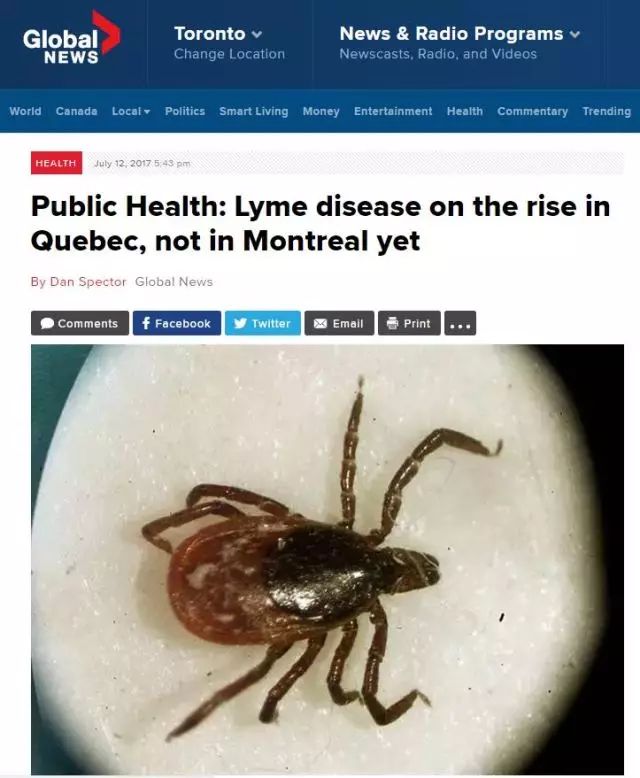 最新新闻则是卫生局提醒广大人民群众,魁省的莱姆病有上升趋势。↓↓ @- g% e, H r( B