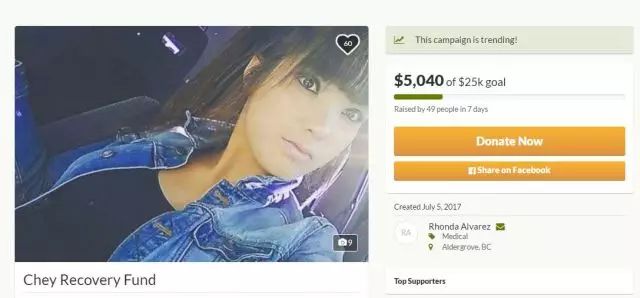 来自BC省素里(Surrey)Chey Fiddler今年才21岁,在6月3日不幸在家中被一只褐皮花蛛(Brown Recluse Spider)咬到了右脚脚踝的内侧,2天后,被确诊患上了罕见而且严重的坏死性筋膜炎,一昏迷就是10天,并且被截去了右脚,目前还没完全脱离危险,有可能会在医院呆上数月。