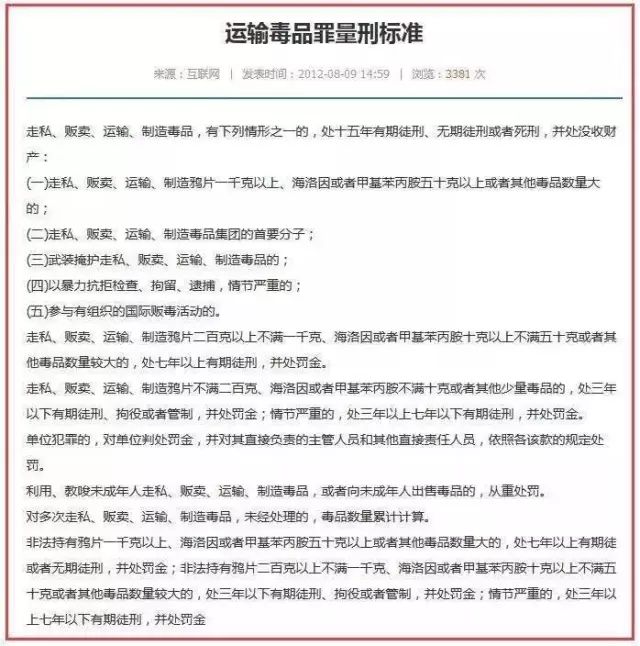 众所周知,中国对于毒品案件处罚力度非常强硬。 而由于本案涉及携毒量大, 当事人可能面临最高刑罚一死刑!