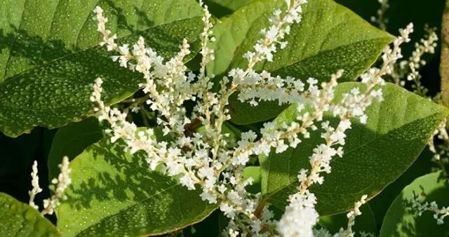 日本虎杖不怕水,掉落的叶子能顺着河漂到下游继续生长。